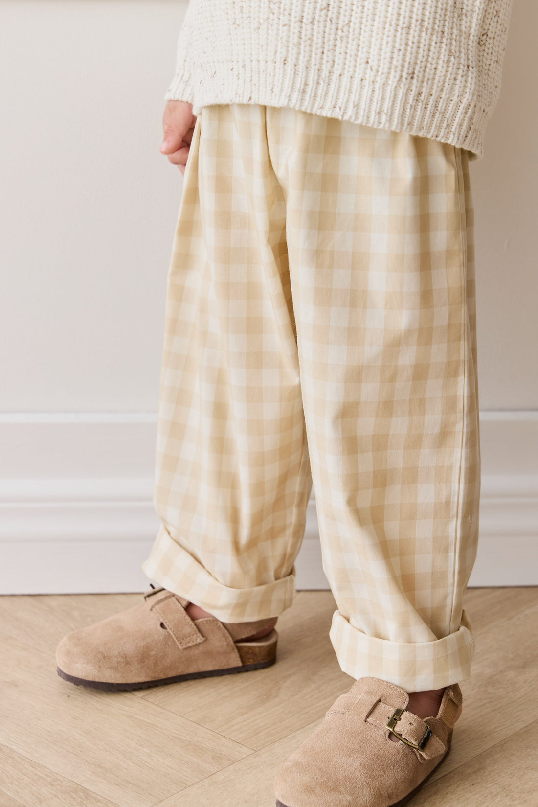 Organic Cotton Kingston Pant - Gingham Pale Khaki
