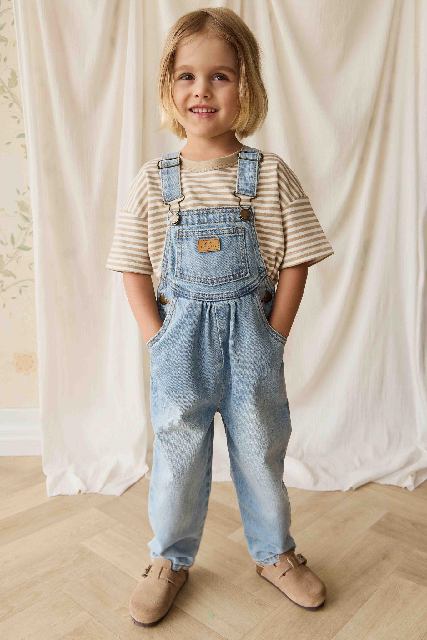 Made from a durable yet breathable blend of cotton, polyester, viscose, and elastane, it offers comfort and flexibility for growing bodies. The rich dye finish adds depth to the colour, while nickel-free metal accessories ensure safety and softness against delicate skin.