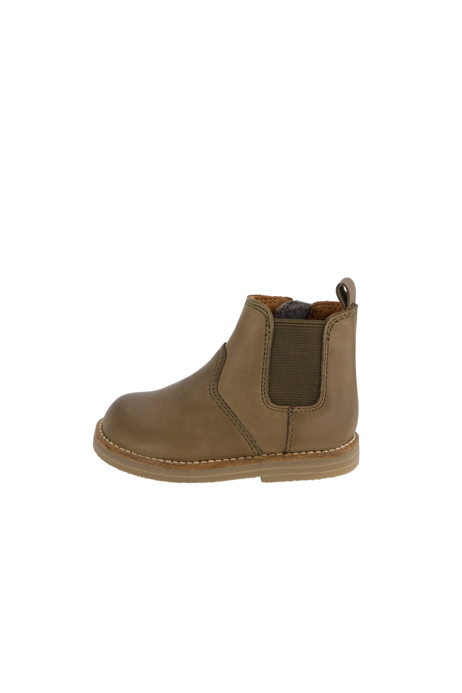 Leather Boot with Elastic Side - Olive