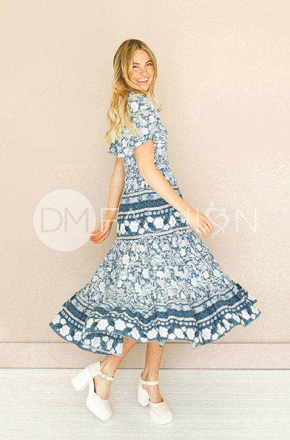 Leilani Teal Hibiscus Smocked Dress - DM Exclusive - Maternity Friendly