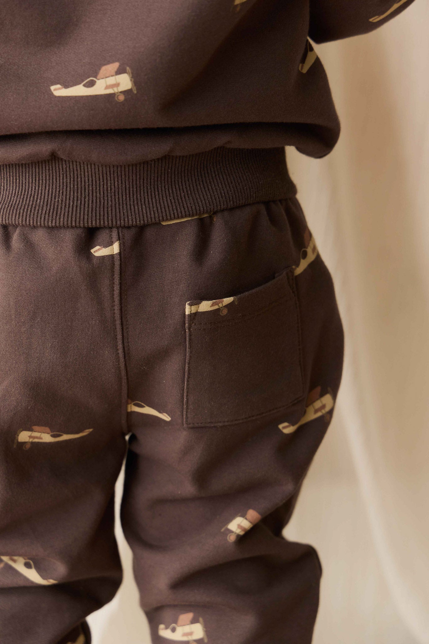 A cosy and adventurous staple for everyday wear, the Dominic Track Pant in Pilot Planes Bistre is crafted from a soft blend of 95% organic cotton and 5% spandex, offering breathable comfort with a touch of stretch. Featuring a deep bistre brown base with playful airplane illustrations, this style is perfect for little explorers with big imaginations.