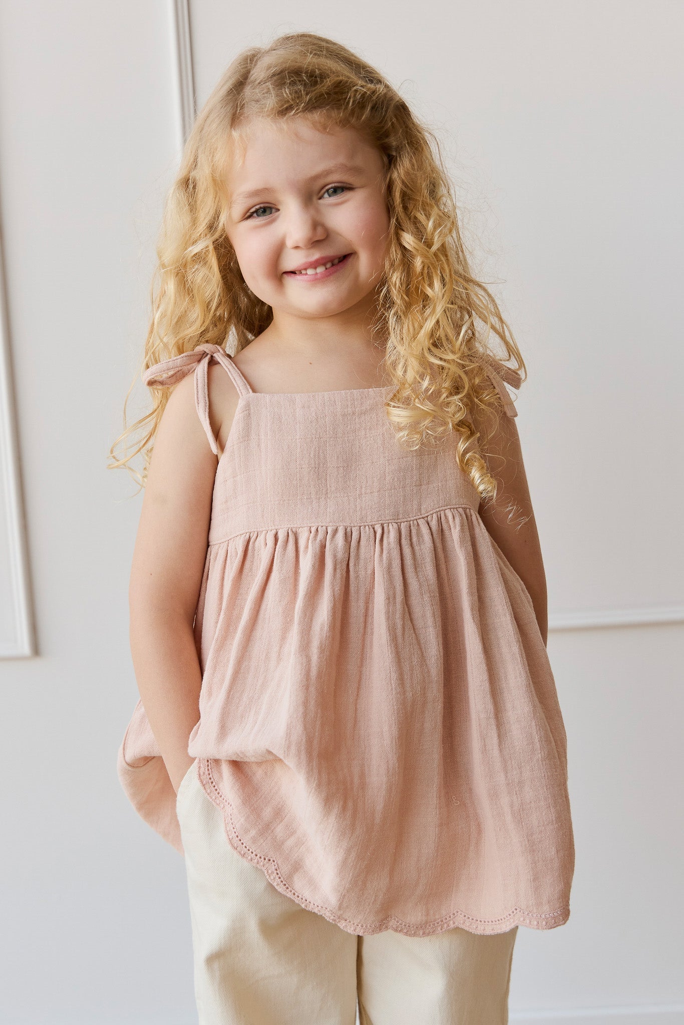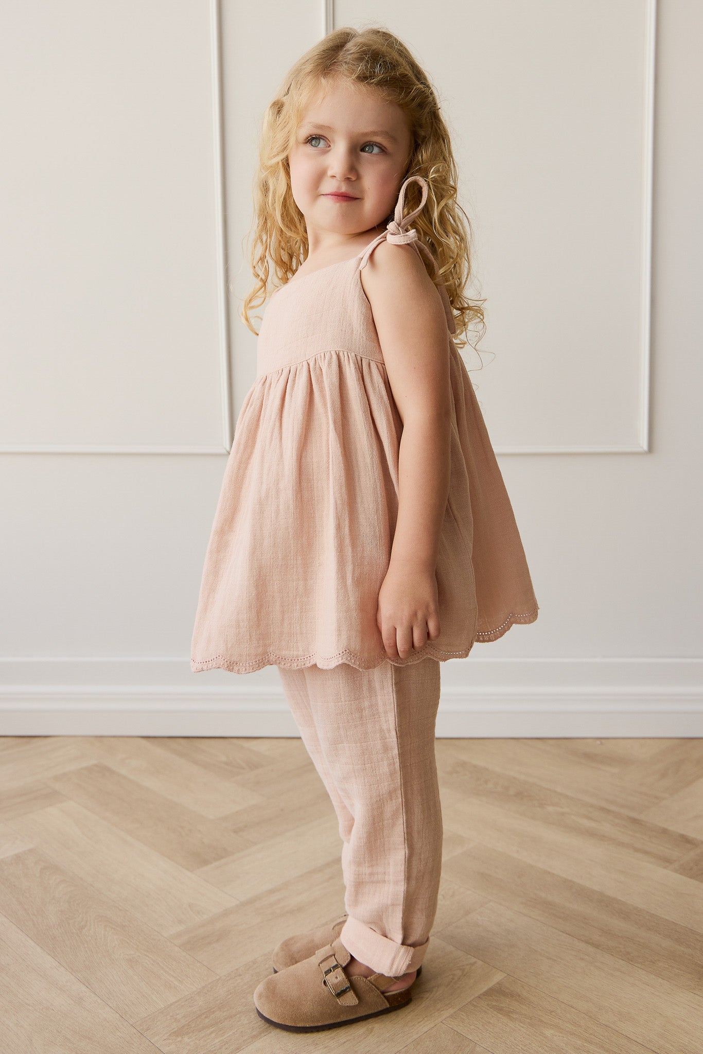 Organic Cotton Muslin Briella Top - Chalky Pink